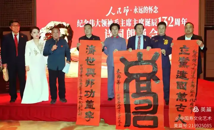 一是为纪念主席诞辰132周年,赵玉杰会长撰写了六尺整张的太阳寿和 “立党建国万古人,济世兴邦功盖宇” 的颂联,来敬仰伟大的领袖主席和颂扬伟大的主席思想永惠众生!